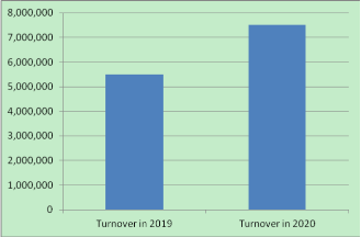 Rotatividade em 2019: US $ 5.500.000 ROONOVER em 2020: USD7.500.000 Taxa crescente: 36,36%